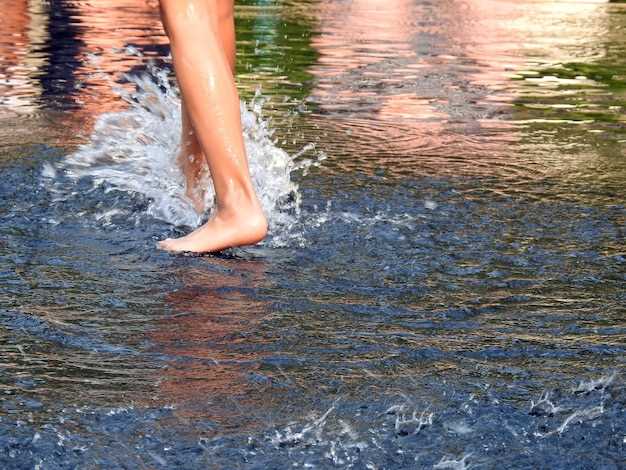 Marcher pieds nus dans les flaques d’eau.